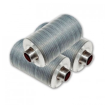 繞片式翅片管均采用(鋼、鋁、銅、不銹鋼等)帶繞制(鋼、鋁、銅、不銹鋼等)管,經(jīng)過機(jī)械強(qiáng)力繞制,呈螺旋狀,有三種不同的片距:3.2mm“R”,4.2mm“M”,6.5mm“T”。